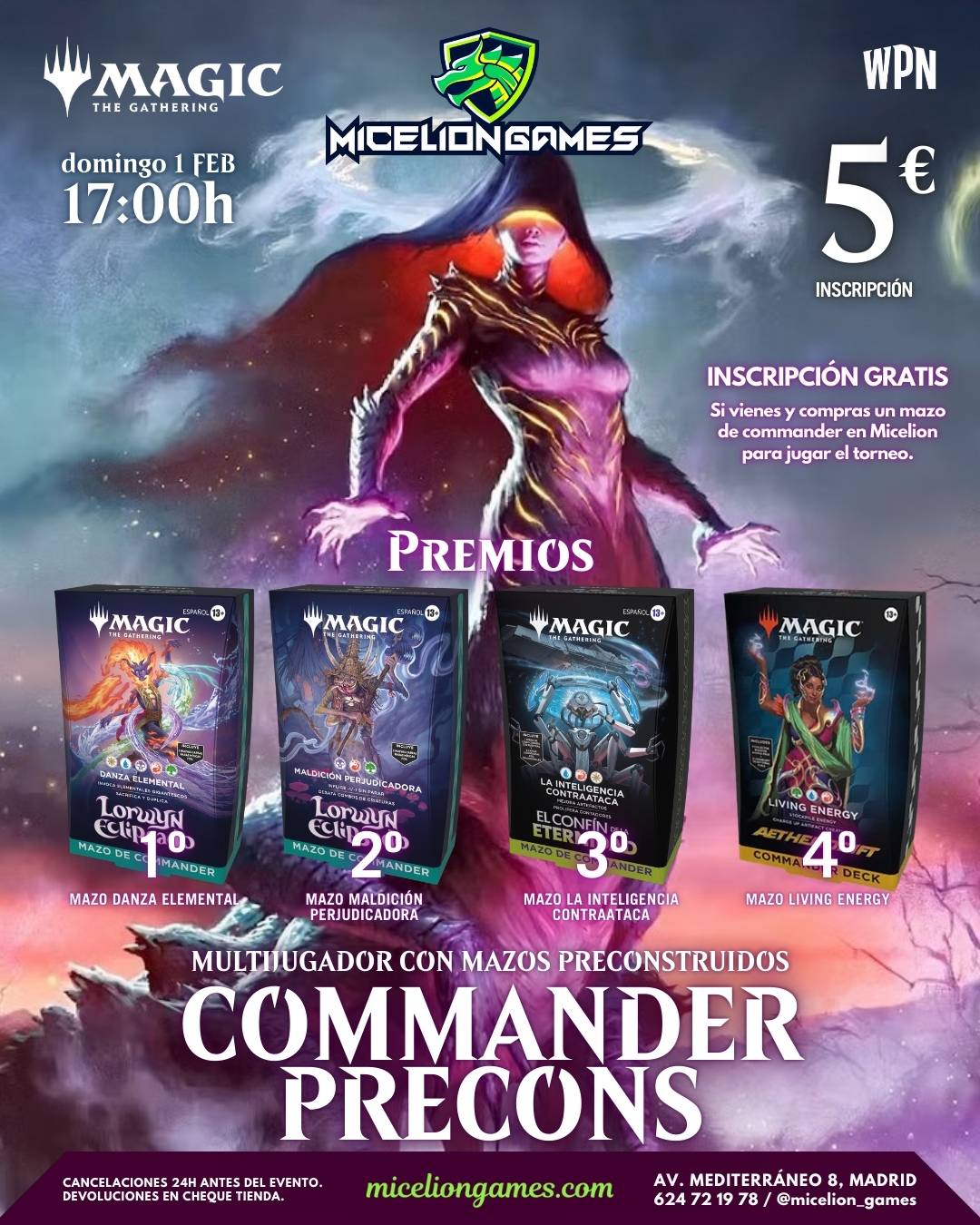***Si compras un mazo de Commander en Micelion Games ese mismo día para jugar este torneo la inscripción es gratuita***