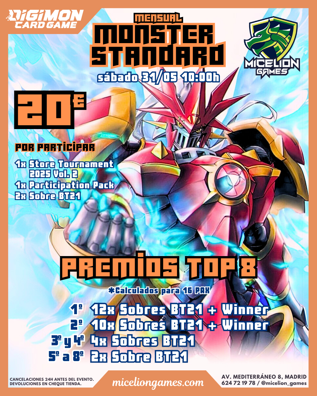 Volver a la TiendaSábado 31/05 · 10:00h · 5€ · Formato Standard · Las inscripciones estarán abiertas hasta 15 minutos antes del torneo.