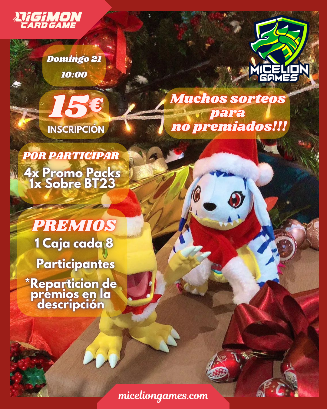 Volver a la Tiendadomingo 21 de Diciembre · 10:00h · 15€ · Plazas limitadas · Las inscripciones estarán abiertas hasta 15 minutos antes del torneo.