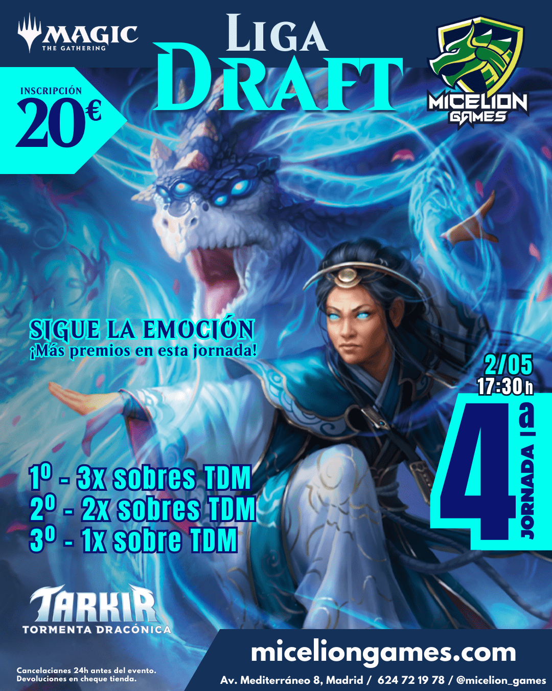 Para cada mesa de 8 jugadores (en caso de ser menos se ajustarían proporcionalmente) *Los sobres de los premios son Sobres de juego de TARKIR DRAGONSTORM