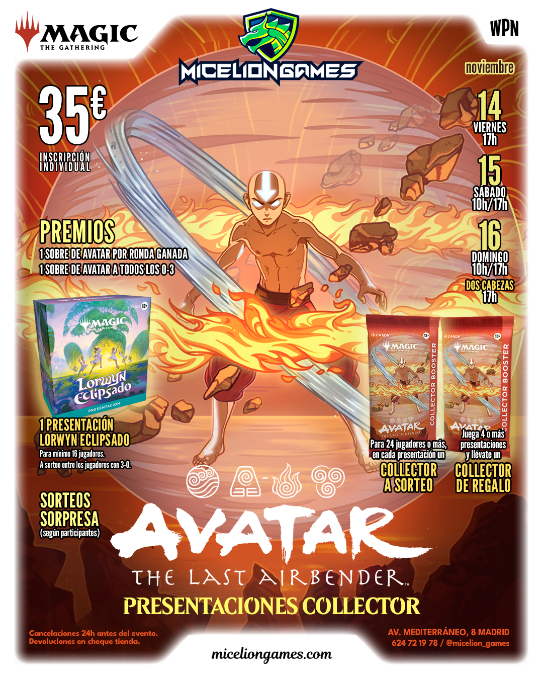 Juega 4 o más presentaciones y llévate un Sobre Collector de AVATAR: La Leyenda de Aang de regalo!!!!! Así de fácil, un Collector por jugar a Magic en Micelion Games!!! ;D