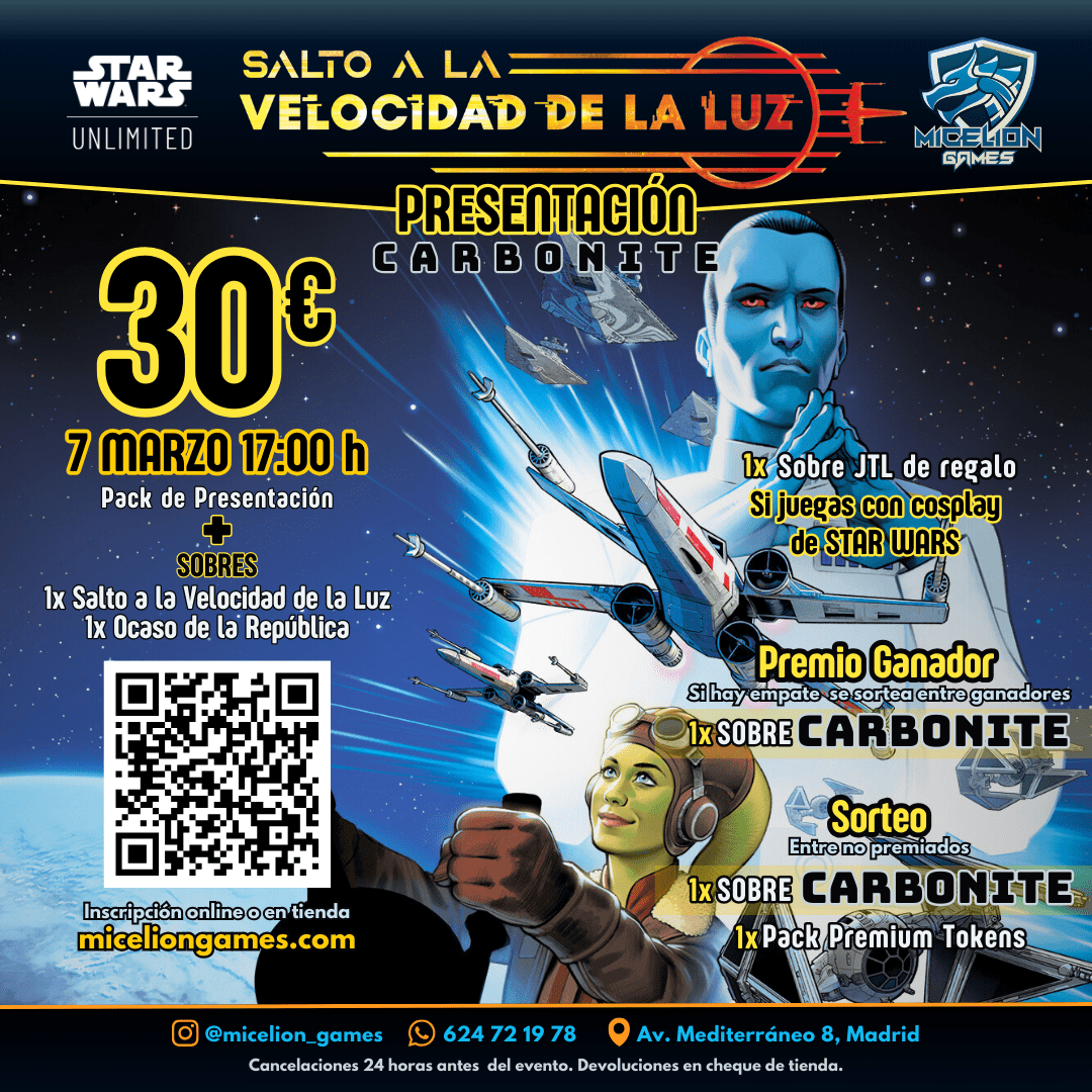 Juega la presentación de la nueva expansión de SWU en Micelion Games y ¡consigue un sobre CARBONITE!