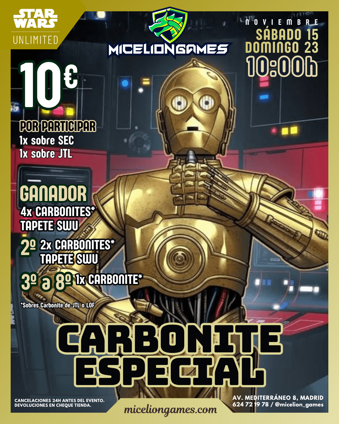 Volver a la TiendaSábado 15 y domingo 23 de noviembre · 10:00h · 10€ · Formato Premier BO3