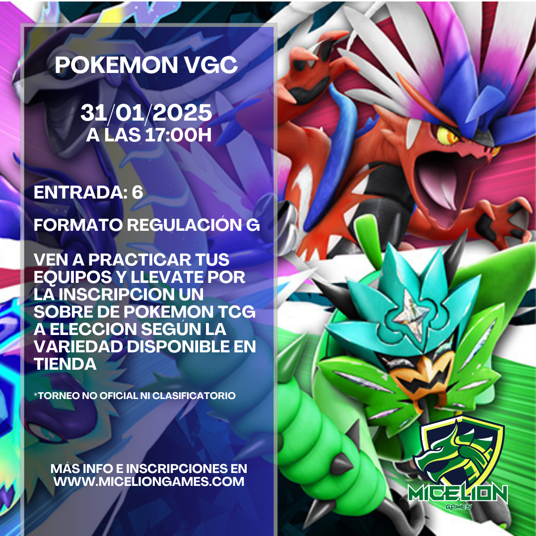 LLÉVATE POR LA INSCRIPCIÓN UN SOBRE POKEMON TCG A ELECCIÓN SEGÚN DISPONIBILIDAD.