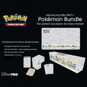 El First Partner Accessory Bundle es el paquete esencial para cualquier entrenador Pokémon que quiera maximizar su experiencia de juego. Este bundle incluye una variedad de accesorios indispensables, diseñados para ayudarte a mantener tus cartas organizadas y en perfecto estado. Con su diseño inspirado en los Pokémon iniciales más queridos, este paquete es ideal tanto para jugadores nuevos como para coleccionistas veteranos.