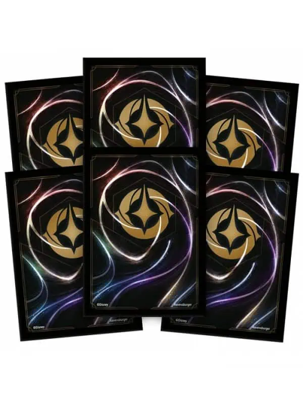 Protege tus cartas con las fundas de tamaño estándar con acabado mate y decoradas con la ilustración de Logo Lorcana – Disney Lorcana Shimmering Skies.