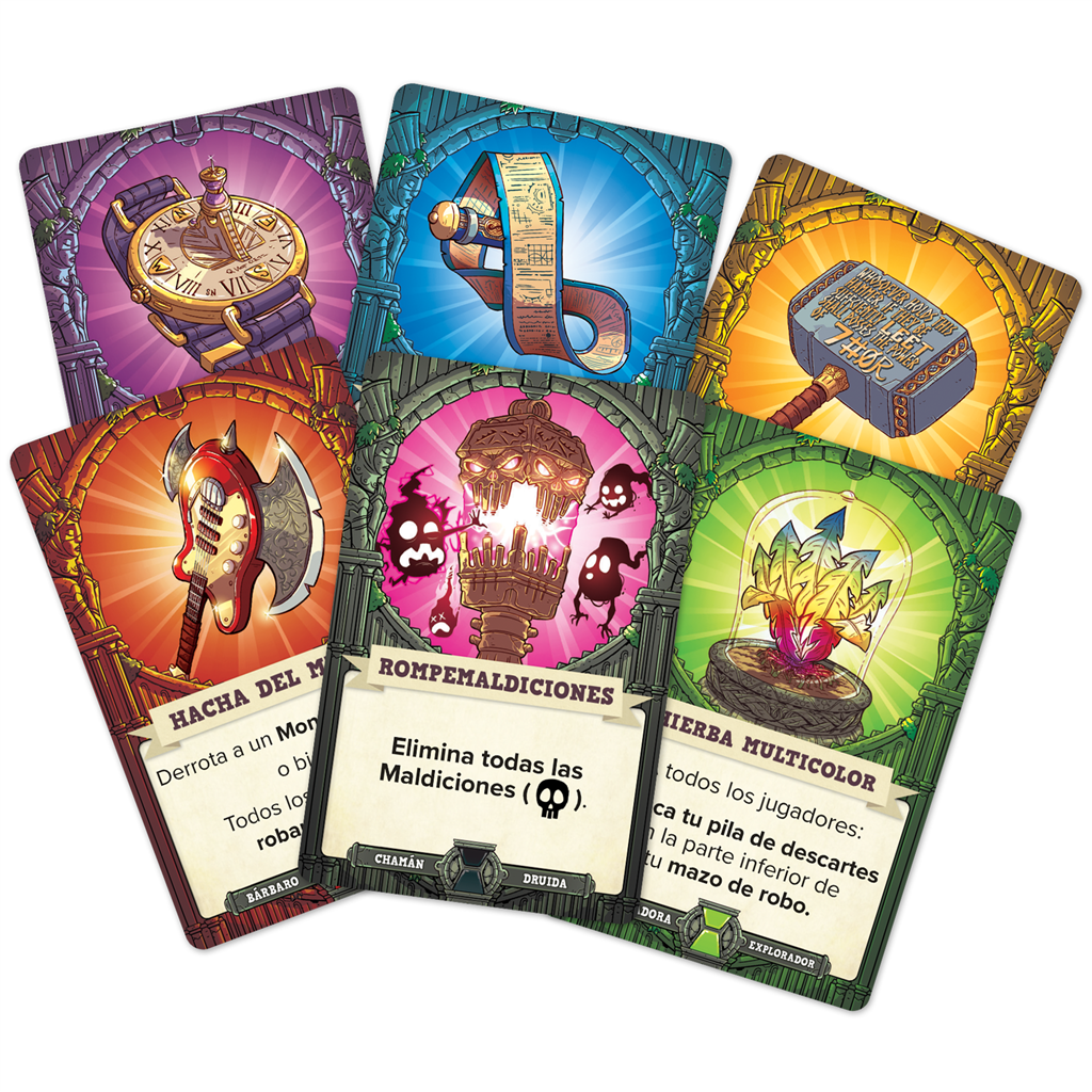 5 Minute Dungeon – ¡Maldición! ¡Otra vez no!» es una expansión emocionante para el juego base «5 Minute Dungeon». Esta expansión introduce nuevos retos y habilidades para los aventureros en su misión de derrotar al Amo de la Mazmorra. Los jugadores pueden unirse a dos nuevos héroes, el Druida y el Chamán, y enfrentarse a un nuevo tipo de desafío: las maldiciones. Estas molestas cartas cambian las reglas del juego de forma alocada y se quedan para fastidiar al grupo durante toda la partida. Además, cada jefe ahora tiene su propio conjunto de cartas de jefe, y hay seis poderosos artefactos que pueden cambiar el rumbo de la batalla. ¡Prepárate para una experiencia aún más caótica y divertida!