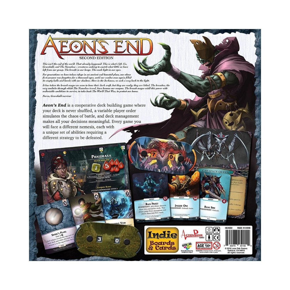 Aeon’s End: La Guerra Eterna es un juego de mesa cooperativo de construcción de mazos donde los jugadores unen fuerzas para defender Gravehold, el último bastión de la humanidad, de las temibles criaturas conocidas como The Nameless.