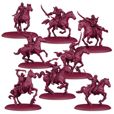 Al otro lado del mar Angosto, Daenerys Targaryen dirige su khalasar como khaleesi del gran mar de hierba. Su influencia y su talento la han convertido en una de las mujeres más poderosas del mundo. Ninguna otra facción cuenta con tanta caballería experta, más experta aún si cabe gracias al inspirador liderazgo de Khal Drogo en el campo de batalla. Además, ser Jorah Mormont, el noble desterrado de Poniente, aporta acero y tácticas occidentales a su causa. Por último, Daenerys también puede confiar en que Illyrio Mopatis inclinará la balanza a su favor mediante una suma de oro o una sutil amenaza. Aunque los Dothraki de Daenerys Targaryen quizá parezcan poco más que salvajes a ojos de los ponientis, subestimarlos será lo último que haga un comandante insensato.