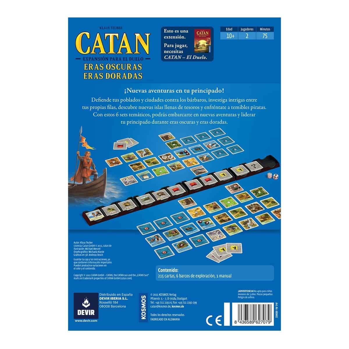 ¡Hola, amante de los juegos de mesa! Si eres fan de Catan: El Duelo, ¡te va a encantar esta expansión! «Eras Oscuras, Eras Doradas» lleva tu experiencia de juego a otro nivel con nuevas cartas, estrategias y desafíos. Sumérgete en una época de caballeros y prosperidad, donde tu ingenio será clave para construir el reino más poderoso.