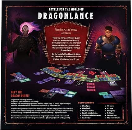 Si eres fanático de los juegos de mesa y del universo de D&D, el Dragonlance Warriors of Krynn es una adición imprescindible a tu colección. Este juego te sumerge en el rico mundo de Krynn, conocido por sus épicas batallas y aventuras heroicas. A continuación, te contamos qué encontrarás en la caja y por qué este juego es perfecto para tus noches de juegos.