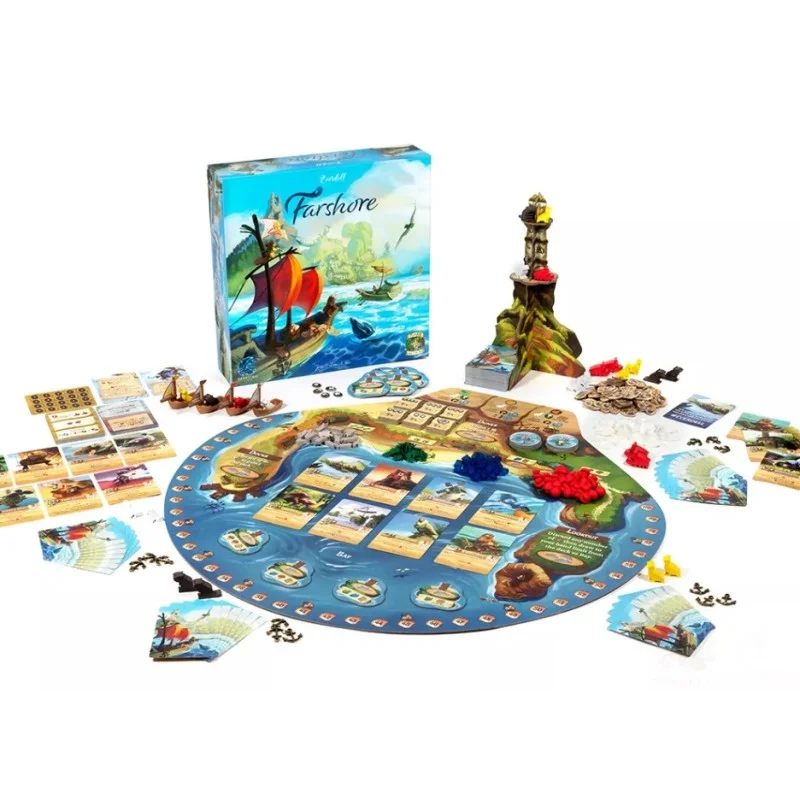 En Farshore, cada jugador asume el rol de un capitán que lidera una expedición para explorar un archipiélago lleno de oportunidades y peligros. Los jugadores deben gestionar su tripulación, recolectar recursos valiosos como madera, oro y alimentos, y construir asentamientos en las nuevas islas que descubran.