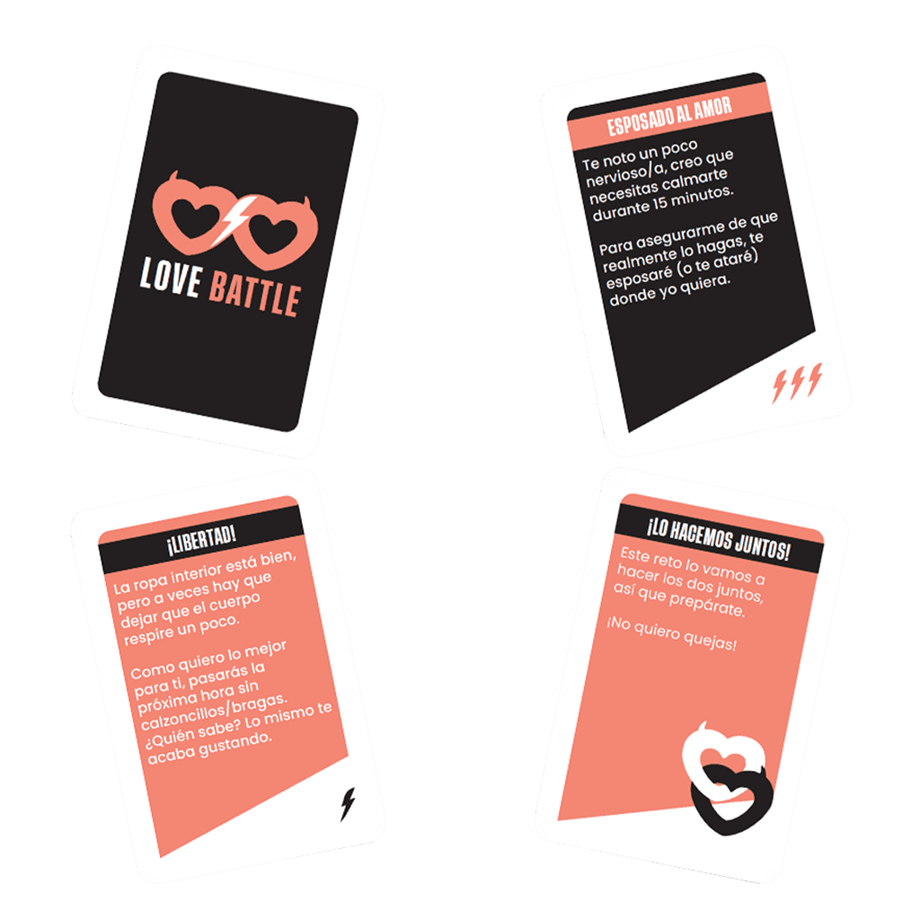 Love Battle es un juego de cartas divertido para gente mayor 16 años. Los jugadores tienen como objetivo proponer actividades o desafíos a su pareja con las que crear situaciones nuevas y divertidas.