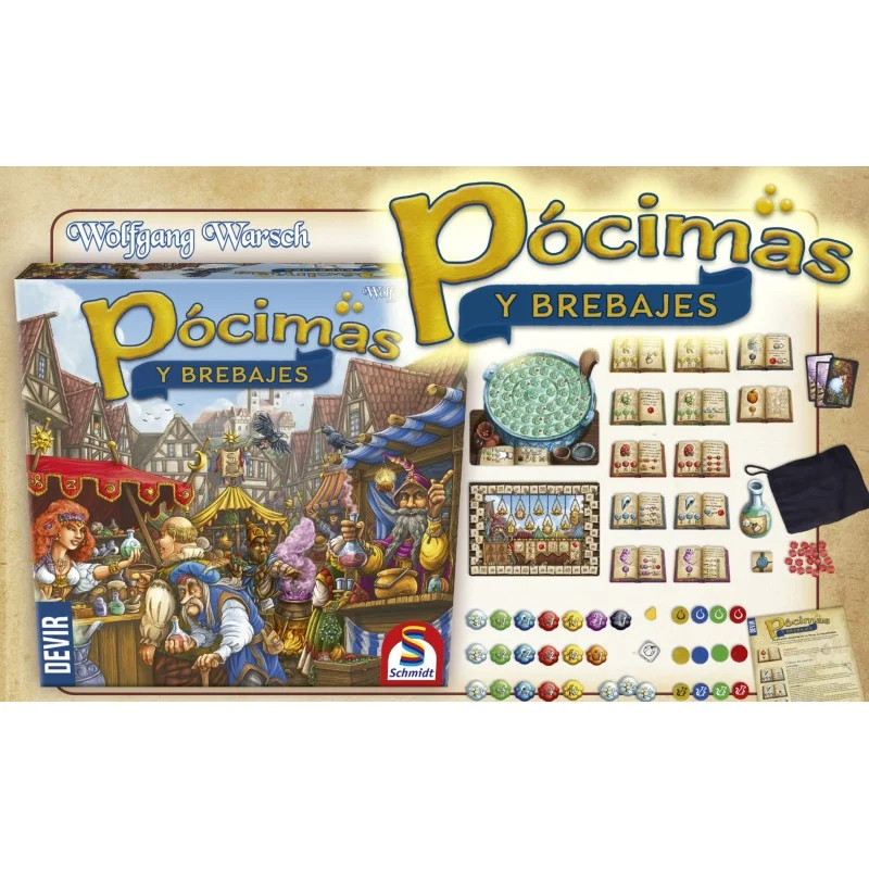 Cuando abres la caja de Pócimas y Brebajes, te encuentras con una variedad de componentes que hacen que cada partida sea única. Dentro encontrarás: