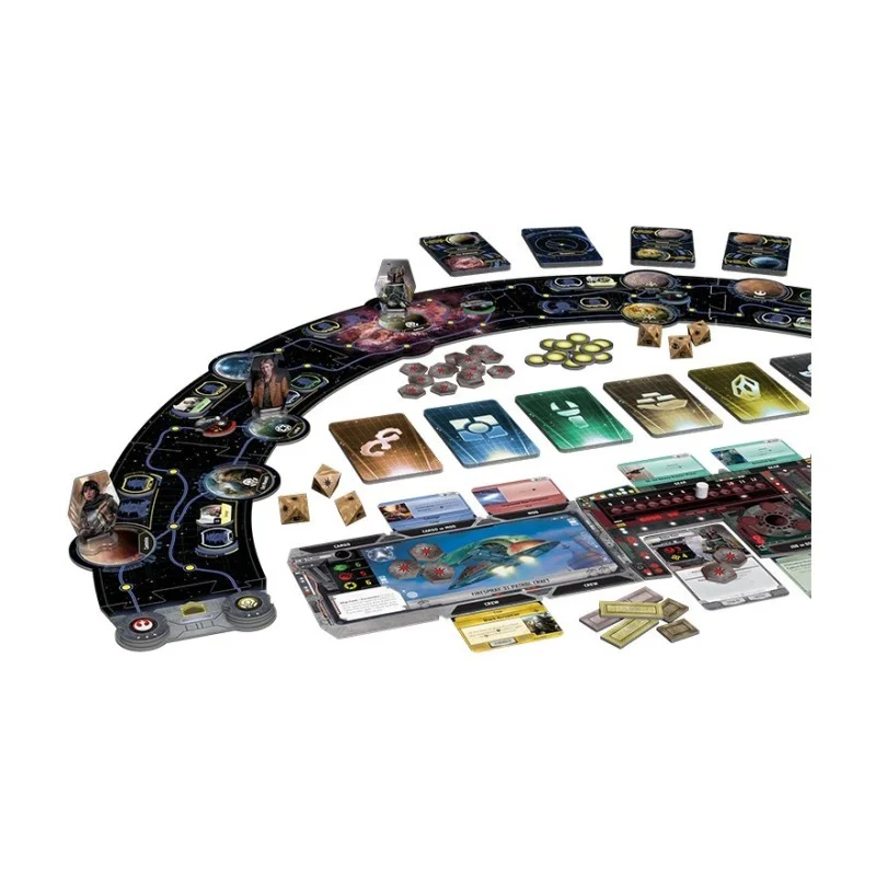 El juego se desarrolla a través de una serie de turnos donde los jugadores pueden moverse por los distintos planetas del tablero, recoger trabajos, mejorar su nave y enfrentarse a desafiantes enemigos. Todo esto mientras exploras algunos de los lugares más icónicos de la galaxia de Star Wars, desde Tatooine hasta Kessel.