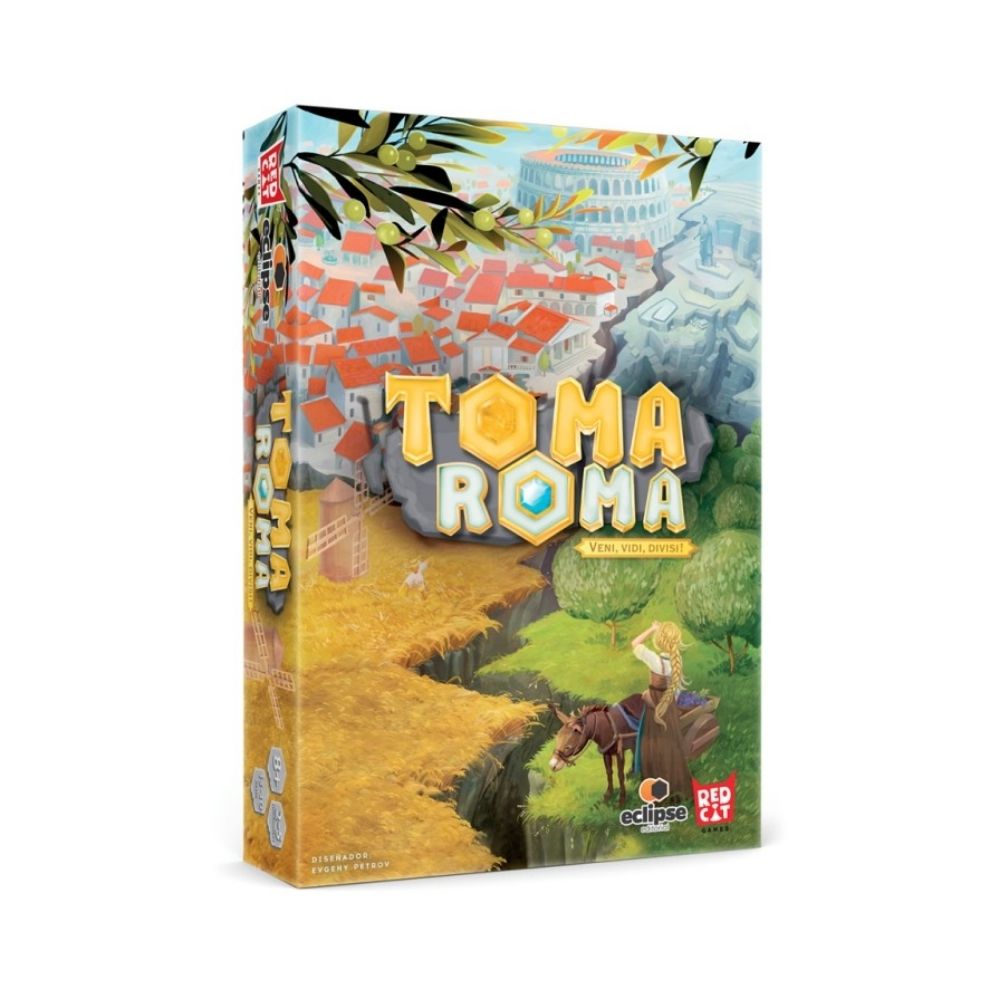 El Toma Roma es un juego de mesa estratégico donde los jugadores compiten por reclamar las tierras del antiguo Imperio Romano tras su caída. Utilizando la mecánica de «Yo divido, tú eliges», los participantes deben repartir territorios y negociar para construir el dominio más próspero.