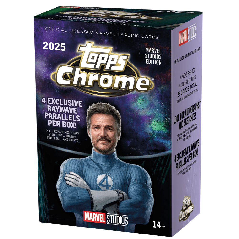 Topps Chrome Marvel 2025: Colecciona tus héroes y villanos favoritos del universo Marvel en esta edición premium. Con cartas base, insertos especiales y paralelas numeradas, cada carta destaca por su acabado Chrome brillante y colores vibrantes. Ideal para fans y coleccionistas que buscan cartas únicas de arte, autógrafos y memorabilia exclusiva.