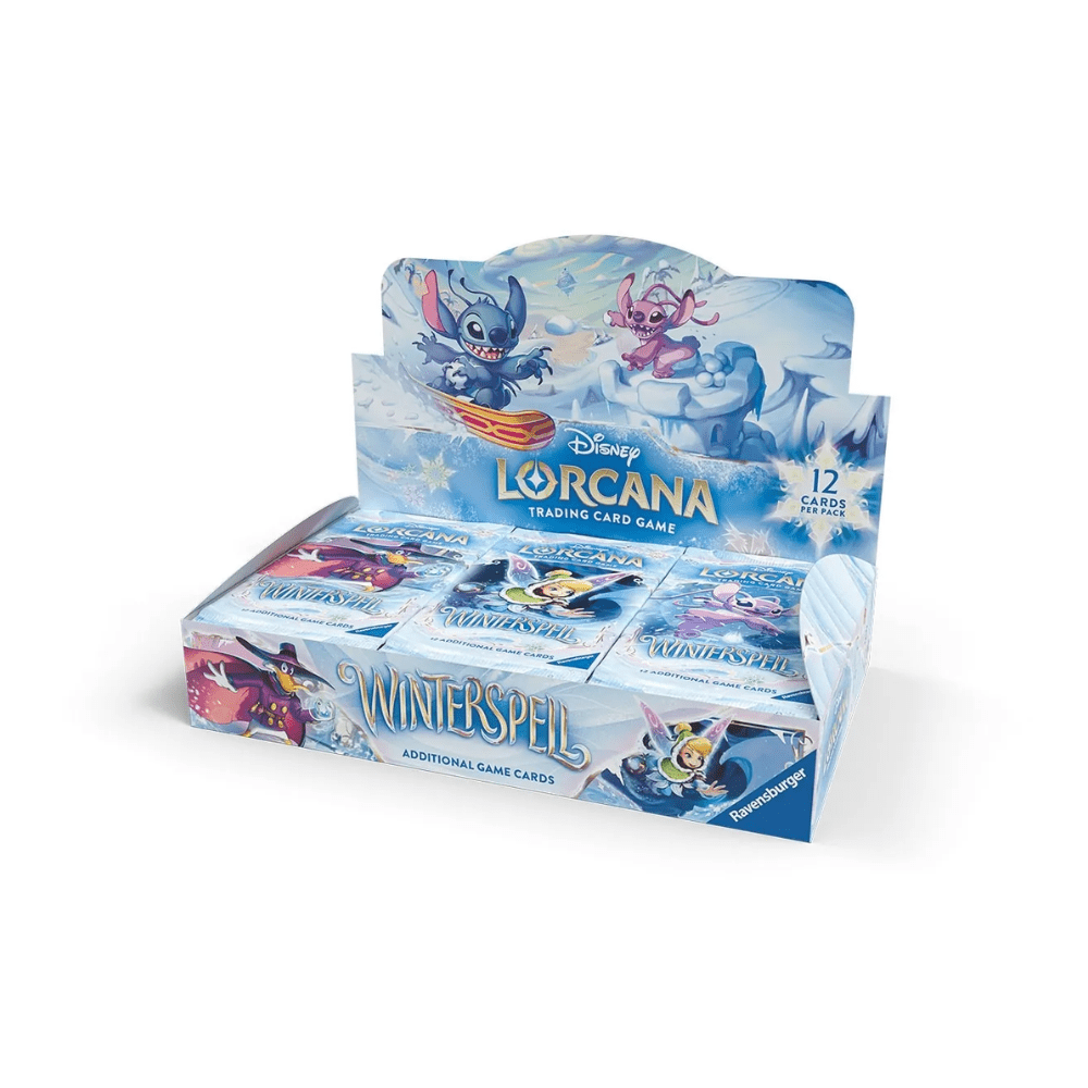Display con 24 sobres de refuerzo del set Winterspell. Cada sobre contiene cartas aleatorias para ampliar colecciones y construir mazos.
