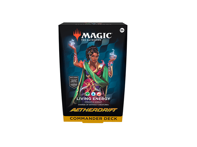 Ponte al volante en la carrera más emocionante del Multiverso con Aetherdrift, una colección de mazos Commander que combina estrategia, adrenalina y épicas batallas multijugador. Con dos opciones emocionantes, cada mazo está diseñado para que vivas una experiencia única en el formato multijugador más popular de Magic: The Gathering.