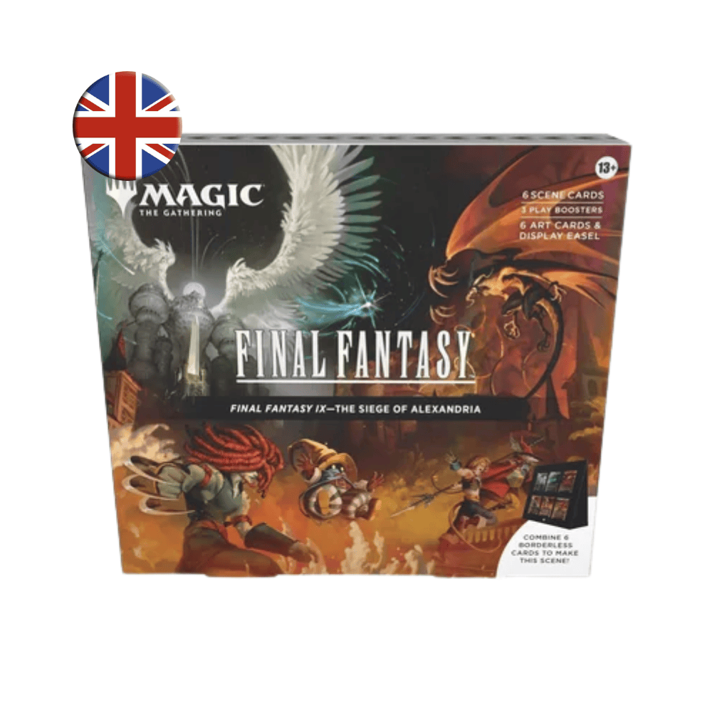 El Magic the Gathering Final Fantasy Scene Box The Siege of Alexandria inglés forma parte de la épica colaboración entre Magic: The Gathering y Final Fantasy. Inspirada en uno de los momentos más memorables de la saga, esta Scene Box exclusiva une el universo estratégico de MTG con la narrativa legendaria de Final Fantasy.