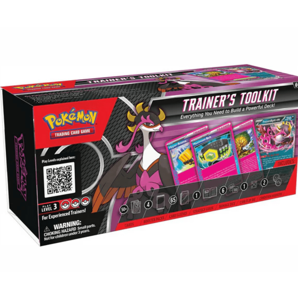 Contenido: (4) sobres de Pokémon TCG, (56) cartas, (1) guía de juego, (6) contadores de daño, (1) troquel de lanzamiento de moneda, (2) marcadores de estado en forma de moneda, (1) tarjeta de código para Pokémon TCG Live