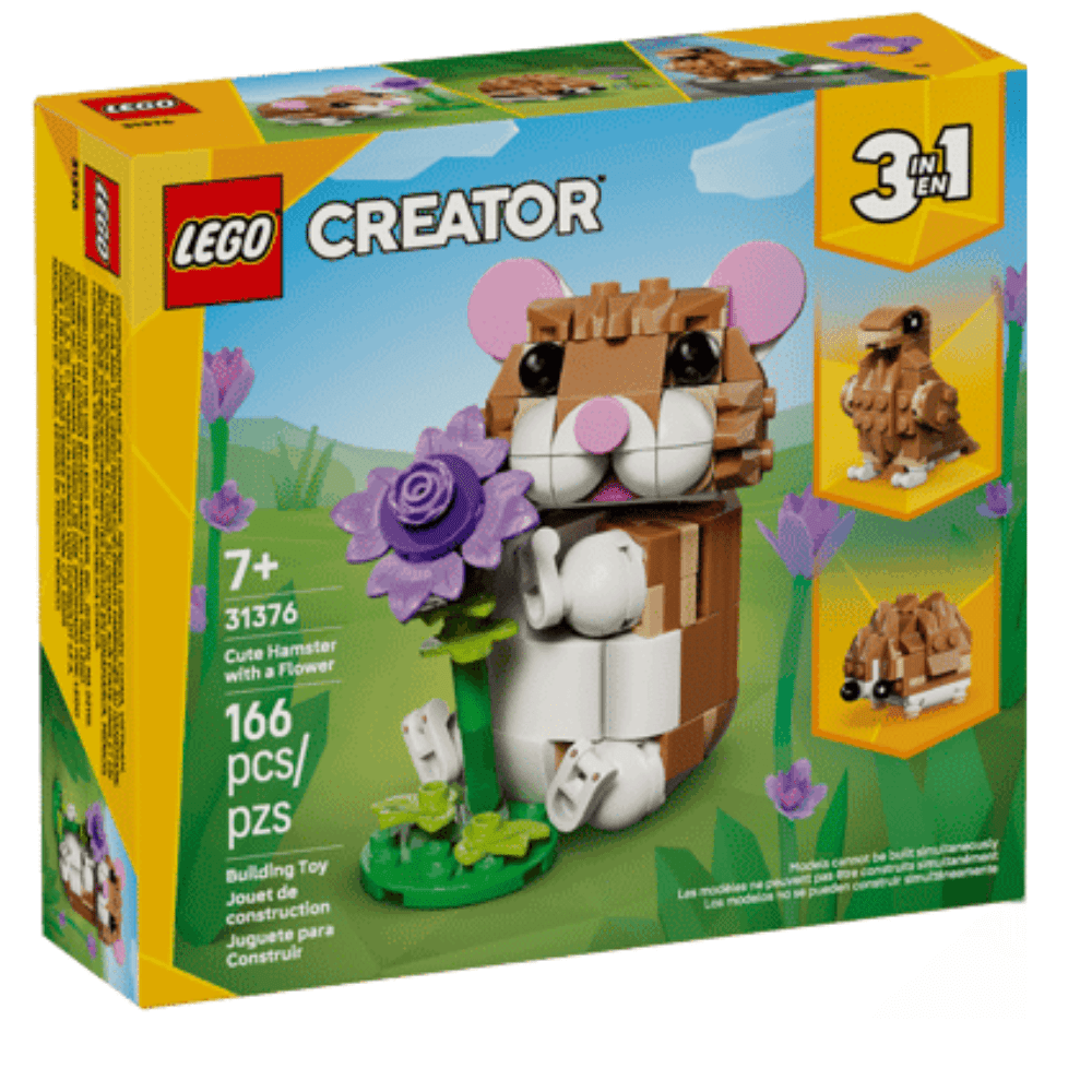 - 3 ANIMALES DE JUGUETE EN 1 PARA PEQUES: El juguete de construcción LEGO® Creator “3 en 1” Lindo Hámster con Flor (31376) para niñas y niños a partir de 7 años les permite construir y reconstruir 3 lindos juguetes con los mismos ladrillos