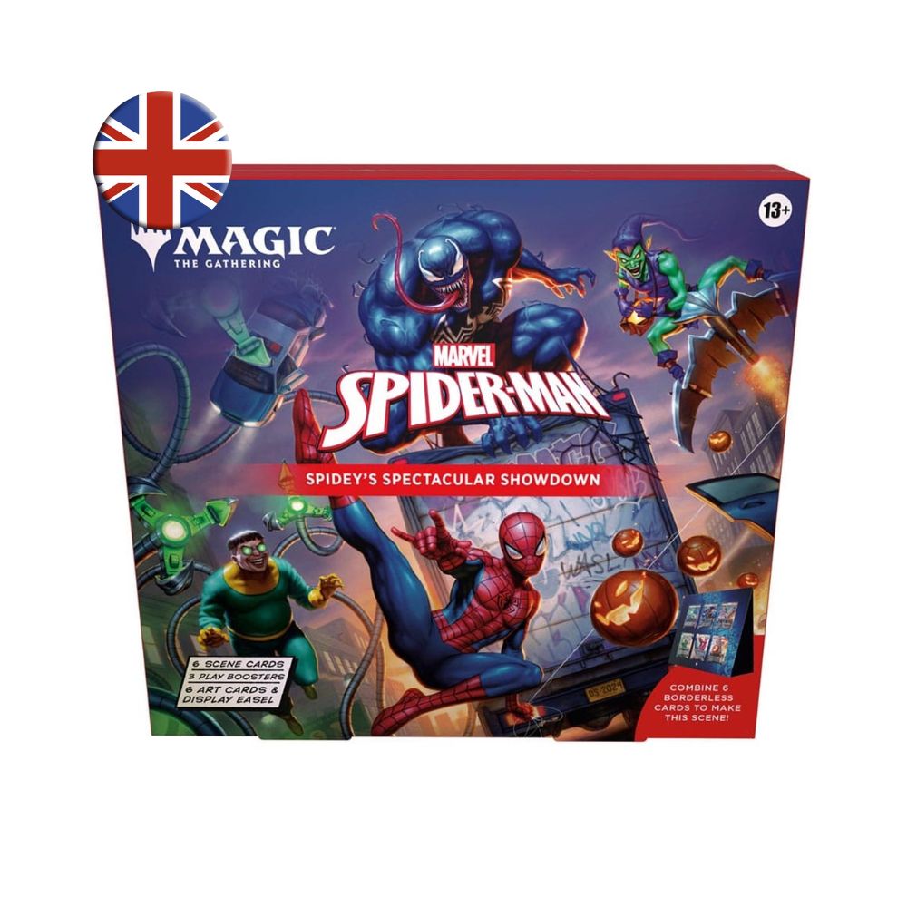 El MTG (INGLÉS) – Marvel’s Spider-Man – Spidey’s Spectacular Showdown es un set exclusivo de Magic: The Gathering, que captura la esencia de los enfrentamientos más icónicos del trepamuros. Este pack incluye 6 cartas foil sin bordes, que juntas forman una escena espectacular de Spider-Man enfrentándose a sus enemigos más peligrosos.