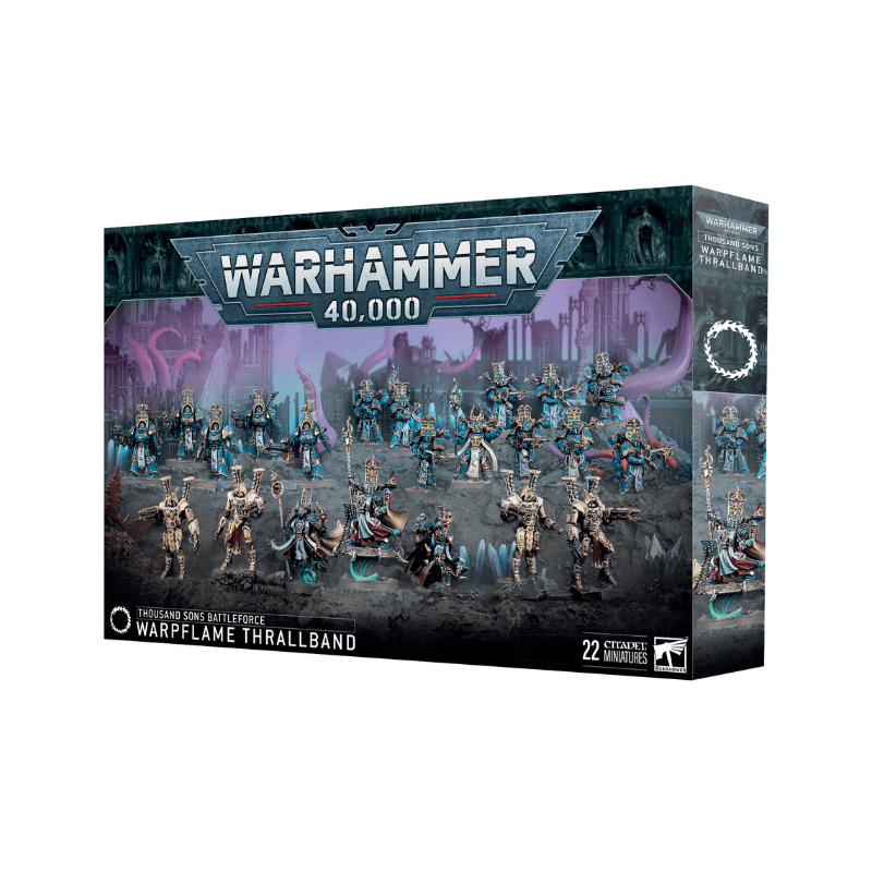 Los Hechiceros de los Mil Hijos lideran a sus tropas con la habilidad de un marionetista, moviéndolas por el campo de batalla como piezas sobre un tablero que solo ellos pueden ver. Los Marines Rúbrica, ataviados con servoarmaduras y armaduras Exterminador, marchan al unísono junto a enormes Robots Sekhetar, constructos infernales imbuidos de potentes conjuros.
