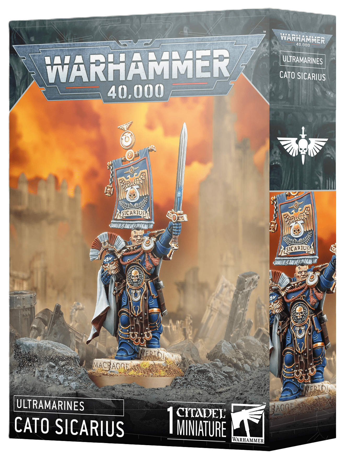 Cato Sicarius es un noble vástago de Talassar y uno de los campeones más consumados de los Ultramarines. Como Capitán de la Guardia de honor Victrix, posee un excelso dominio de la espada y es un auténtico maestro de los asaltos relámpago, desplegando a sus guerreros con una determinación y velocidad nacidas de la confianza más absoluta.